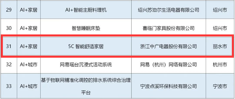 4月1日,浙江省经济和信息化厅正式公布了《2021年人工智能典型应用场景和优秀解决方案(产品)名单》,浙江中广电器集团股份有限公司旗下品牌推出的中广“5C智能舒适家居”,入选“AI+家居”领域“2021 年度浙江省人工智能优秀 解决方案(产品)”名录。