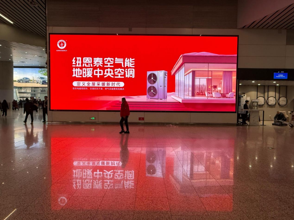 纽恩泰自2024年入驻T1航站楼、设立纽恩泰空气能品牌展示馆以来,持续向国内外旅客展示空气能技术和产品。2026年开年,纽恩泰再度加码,在T2航站楼核心动线投放品牌广告。通过“长期展示+高频曝光”的组合,提升纽恩泰在国内外市场的知名度和影响力。