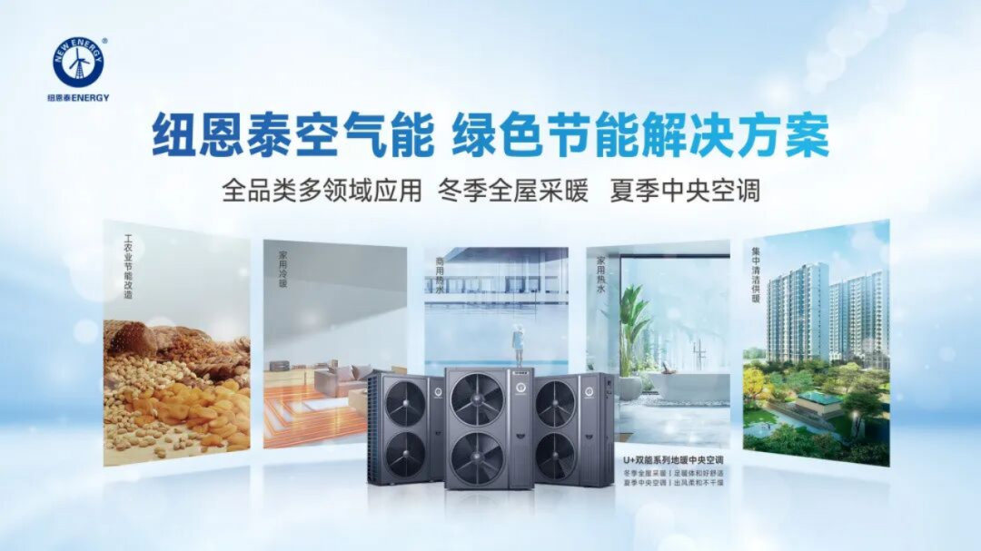 纽恩泰空气能采暖、热水、中央空调、烘干等产品,以高效节能、清洁环保的优势,广泛地应用到各行各业,产品节能50%以上,效果显著,舒适省心,切实推动绿色低碳生活与可持续发展。