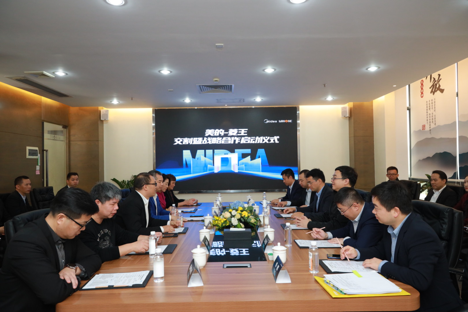 2020年12月11日,美的集团旗下的暖通与楼宇事业部与中国电梯民族品牌菱王电梯在广东省佛山市菱王电梯总部举行并购交割暨战略合作启动仪式。美的集团暖通与楼宇事业部总裁管金伟、美的集团战略发展总监刘啸、美的集团暖通与楼宇事业部国内营销公司总经理周星以及菱王电梯有限公司股东梁永标、邹雍然、菱王电梯有限公司总经理谢建等人共同出席本次签约仪式并参加座谈。