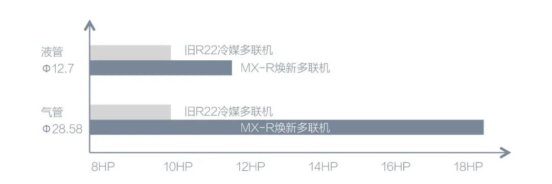 机组具有配管自适应技术,室外机铜管管径选择自由度高;采用冷媒压力自控制技术,机组运行可适应旧配管设计压力,最大限度保护室内吊顶和装修;另外紊流泡洗技术,可视化彻底清洗旧配管中残留的压缩油、酸性物质、水分及其他污渍,保障系统改造完成后高效稳定运转。