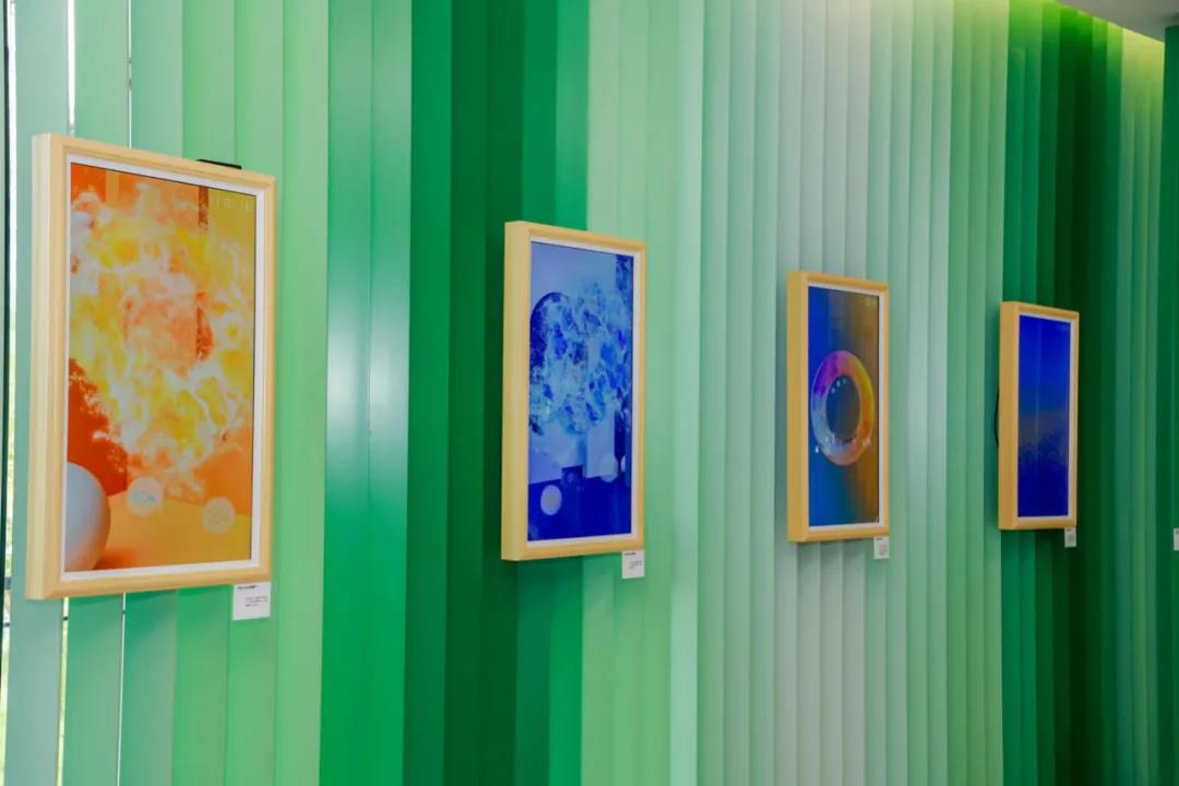 “这四幅画很有艺术感啊!很少见到这种形式的画作?”吕思清老师指着展厅墙上的四幅充满“赛博朋克式未来”风格的作品说道。
