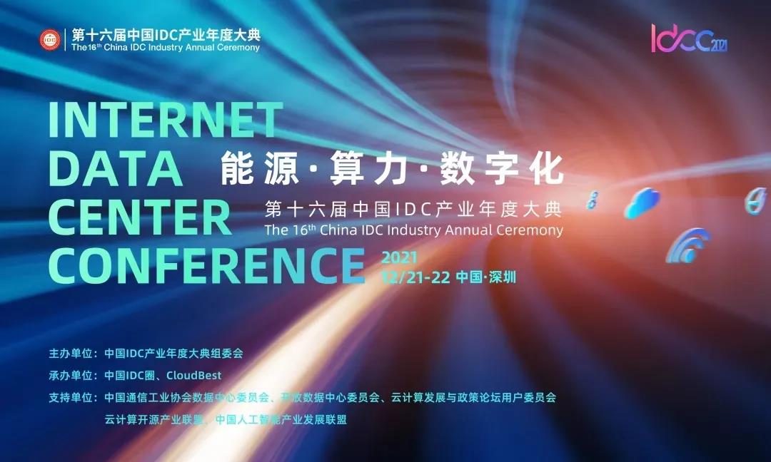 12月21日-22日,以“能源·算力·数字化”为主题的第十六届中国IDC产业年度大典(IDCC2021)在深圳华侨城洲际大酒店盛大召开。大会由中国IDC产业年度大典组委会主办,中国IDC圈、CloudBest承办,邀请产业主管部门领导、产业专家学者、龙头企业高管等莅临现场分享经验与思考,共议行业未来发展方向。