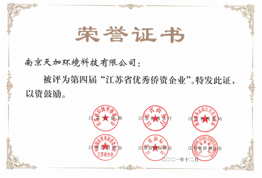 天加荣膺第四届“江苏省优秀侨资企业”称号
