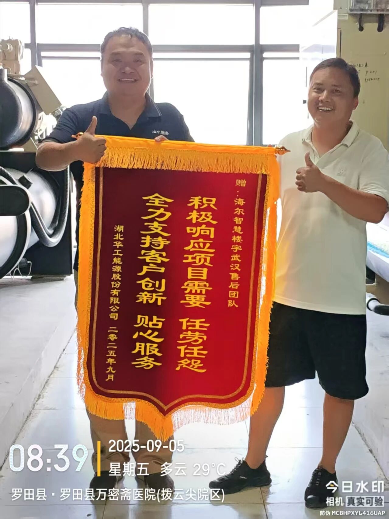 在罗田县万密斋医养中心项目中,海尔楼宇售后服务小微自2023年施工期便为客户提供强有力的服务技术支撑,并在后续23年冬季和24年夏季针对需求做出全力协助及改进。两年配合服务中,以专业高效、认真负责、极具耐心的服务温度,完美体现了海尔既保障客户高效安装,又保障用户对海尔产品全程无忧的服务体验。
