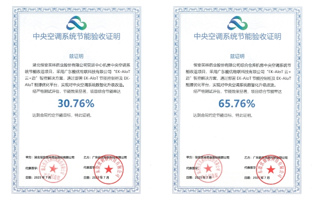 EK-AIoT边缘群控系统EK-AIoT边缘智控基站以国内某一线制药企业节能改造项目为例,EK工业空调为其定制EK-AIoT云边协同数智化解决方案,对中央站房主机和水泵进行变频化改造,接入EK-AIoT工业物联网能源优化平台,进行机房系统能耗建模,通过AI算法进行全局动态在线寻优,保证系统运行在最优的能效状态。经相同工况交叉对比验证,该项目的两个机房系统综合节能率分别为30.76%和 65.76%。