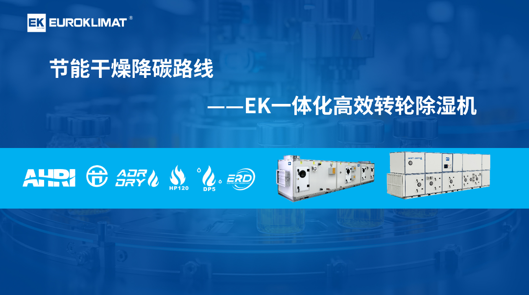 针对生物制药不同的除湿需求和除湿系统高能耗等痛点,EK工业空调推出节能干燥降碳路线,提供EK一体化高效转轮除湿机,在满足制药车间低湿环境要求的同时,实现高效节能运行,助力制药企业降本增效。
