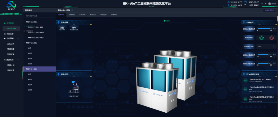 分时段控制,适配商业运营节奏:可设置按早间预热、午间随客流加减载、晚间保温的商场运营节奏自动控温,避免非必要能耗,解决客流波动与能耗浪费的适配难题;