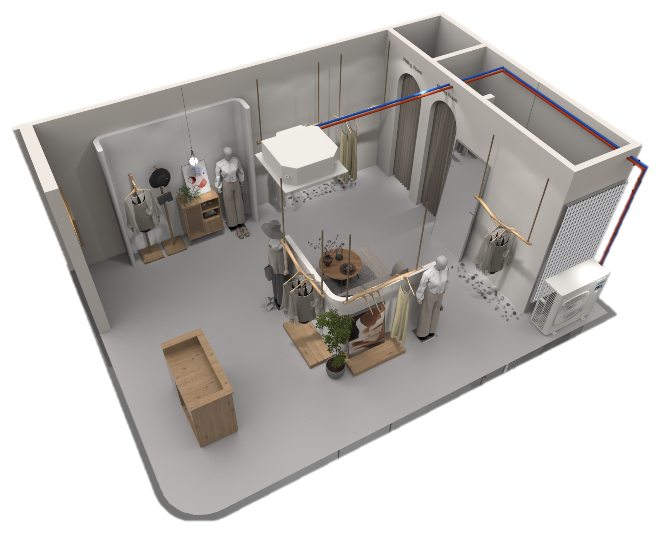 服装店内顾客停留时间长,空调直吹容易引起不适。海尔智慧楼宇提供BEST层流风嵌入机解决方案,采用10˚层流送风技术,气流柔和均匀,避免直接吹向人体。配合行业领先的8/13kW超大冷量,实现有凉感无风感,为顾客营造舒适购物环境。