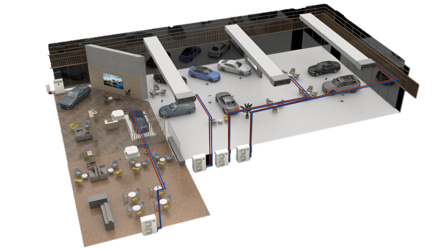 4S店作为综合性展示与服务空间,通常兼具展示区、维修区和客户休息区,各区域温度需求不同。海尔智慧楼宇提供BEST+FAST爆款组合解决方,可根据实际空间划分进行灵活搭配,实现多区域独立控温,既满足大空间整体制冷,又兼顾局部舒适,提升整体服务品质与能效。