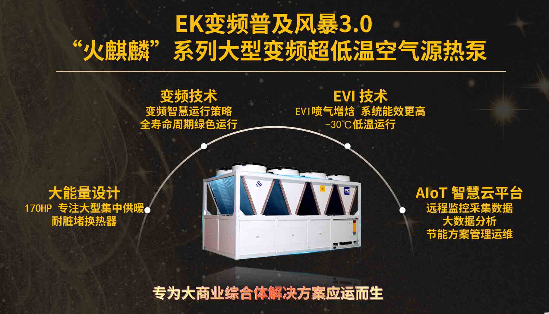 面对复杂需求,EK空调为该大商业综合体配置17台大型变频超低温热泵机组,搭配EK-AIoT智慧云系统进行数智化运维,总制冷量达8840kW,总制热量达9554kW,全面覆盖项目多元负荷需求。