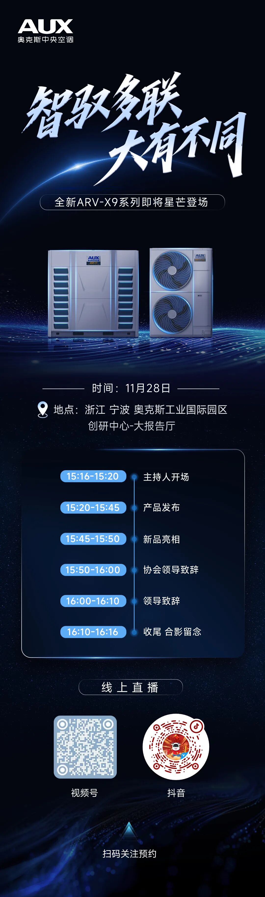 锁定瞩目时刻!奥克斯全新ARV-X9系列多联机,11月28日星芒耀世!