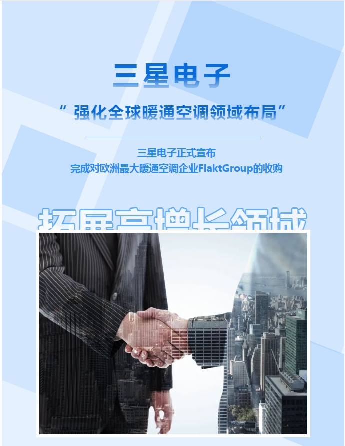 近日,三星电子正式宣布完成对欧洲最大暖通空调企业FlaktGroup的收购,早在今年6月,三星与欧洲投资公司Triton签署协议,以15亿欧元(约合16.8亿美元)收购该公司100%的股份。此举标志着三星在全球暖通空调(HVAC)领域的布局进一步深化,将显著提升其在商业与工业市场的影响力,为拓展高增长领域奠定坚实基础。
