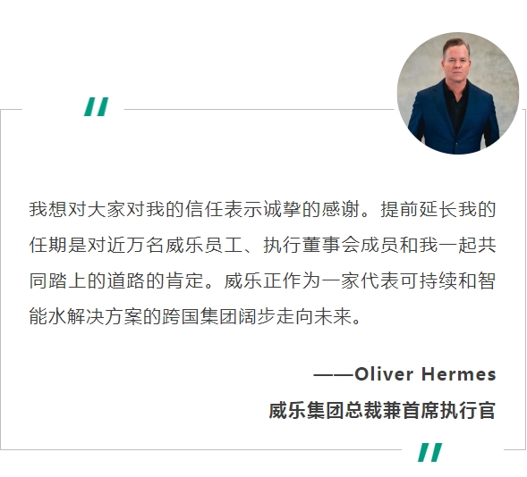 Oliver Hermes(55岁),自2006年以来一直担任威乐集团执行董事会成员、总裁兼全球首席执行官。2019年,Oliver Hermes先生被威乐集团名誉董事长Jochen Opländer博士任命为创业接班人,并接任了威乐基金会(Wilo Foundation)董事会主席。