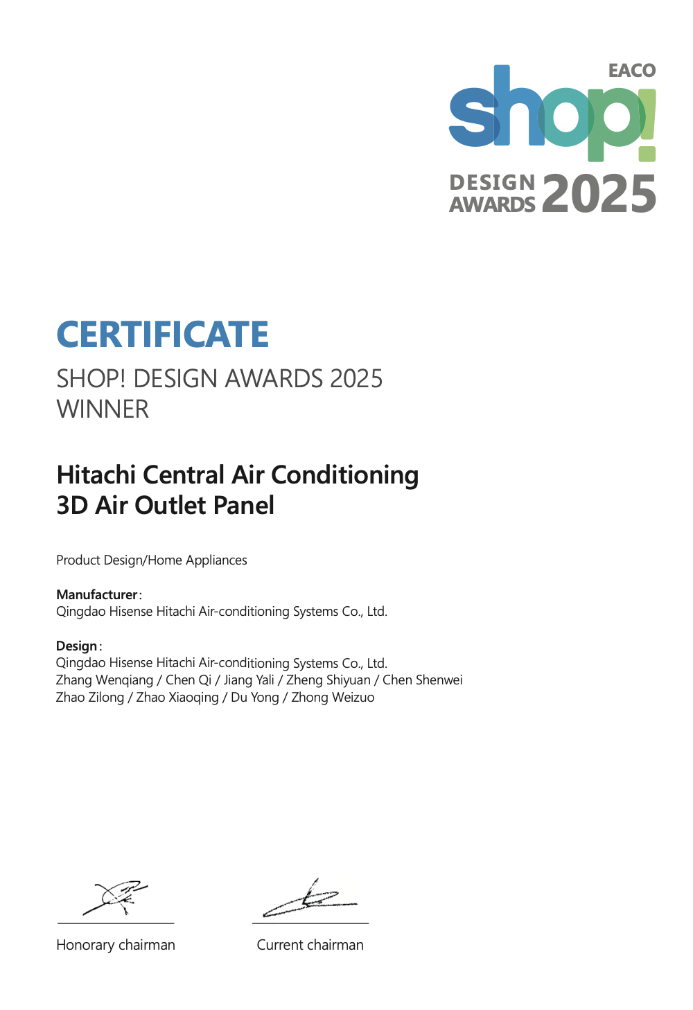 在2025年首度增设的“产品奖”评选中,日立中央空调凭借对空间与交互的深度洞察,从众多参赛作品中脱颖而出,一举揽获两项荣誉:日立AI智慧大屏荣获2025年度SHOP!大奖银奖,日立3D出风面板荣获2025年度SHOP!大奖Winner奖。此次获奖既是国际评审对日立设计美学的认可,也进一步印证了品牌在全球市场的专业影响力。