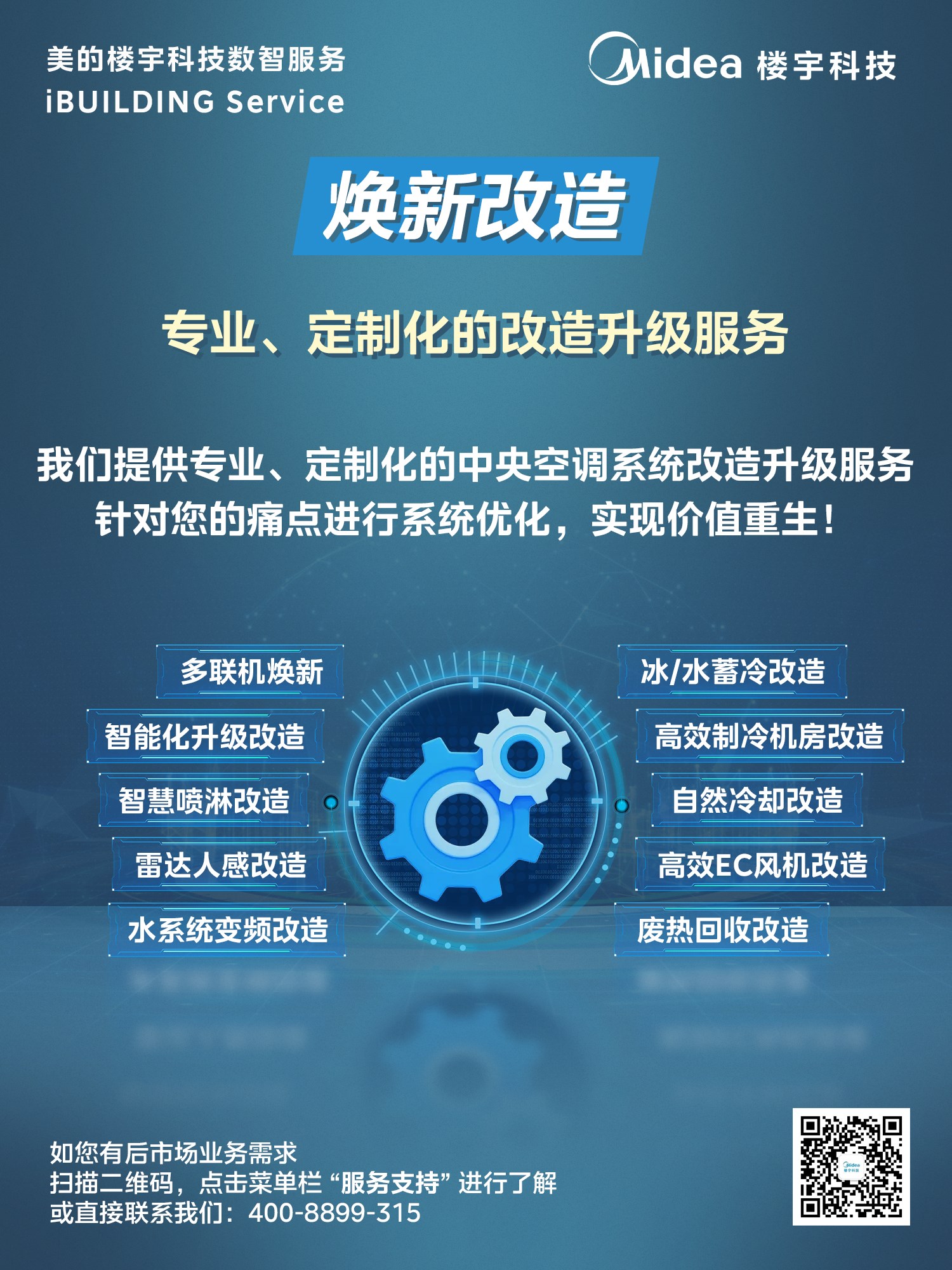 美的楼宇科技可提供专业、定制化的中央空调系统改造升级服务,针对您的痛点进行系统优化,实现价值重生!