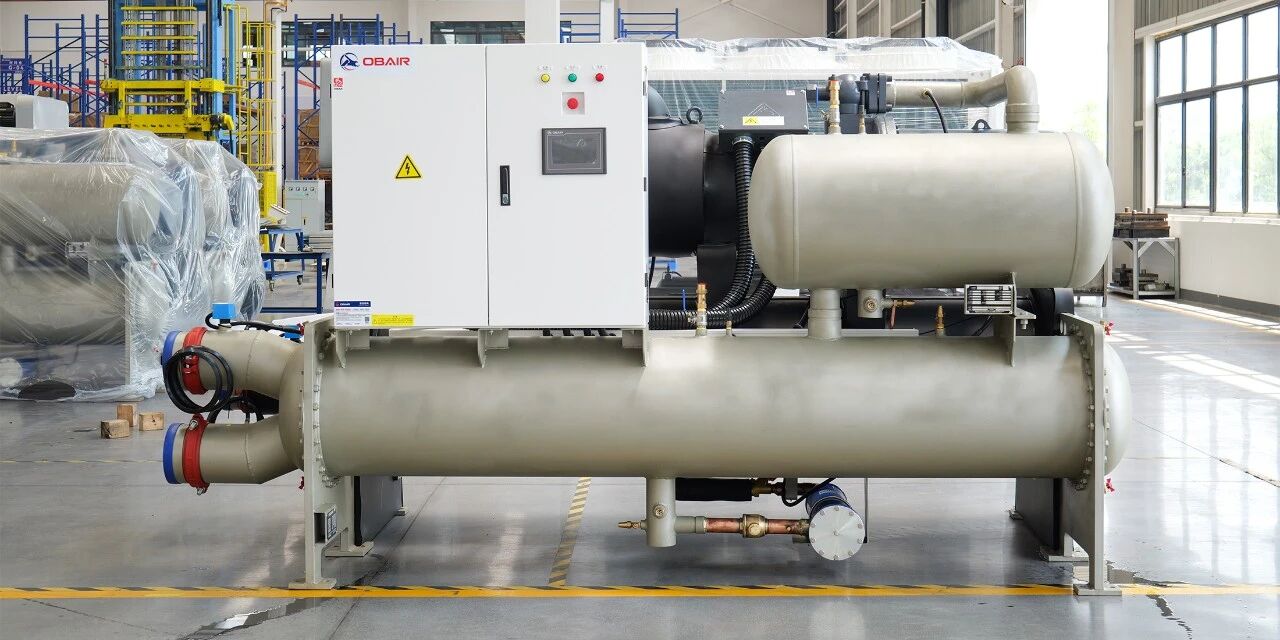 欧博为理文造纸提供的SL系列满液式水冷螺杆冷水机组,是整套系统的“高效心脏”。该机组采用国际知名品牌半封闭双螺杆压缩机,具备部分负荷无限调节能力,确保在不同生产负荷下均保持高效运行。
