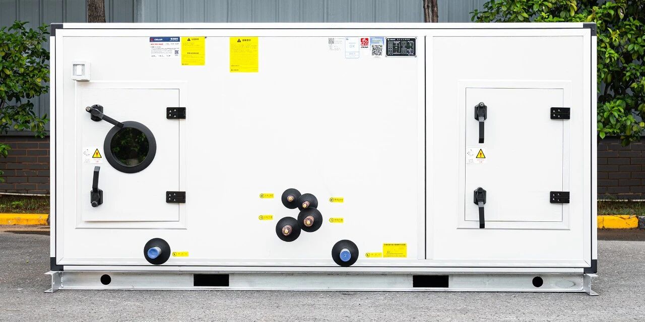 针对生产车间、办公区域等不同空间的环境控制需求,欧博选配了水冷单元式空气调节机。该机组集制冷、除湿、送风等功能于一体,各功能段可根据实际需要灵活组合,满足多样化空气处理需求。