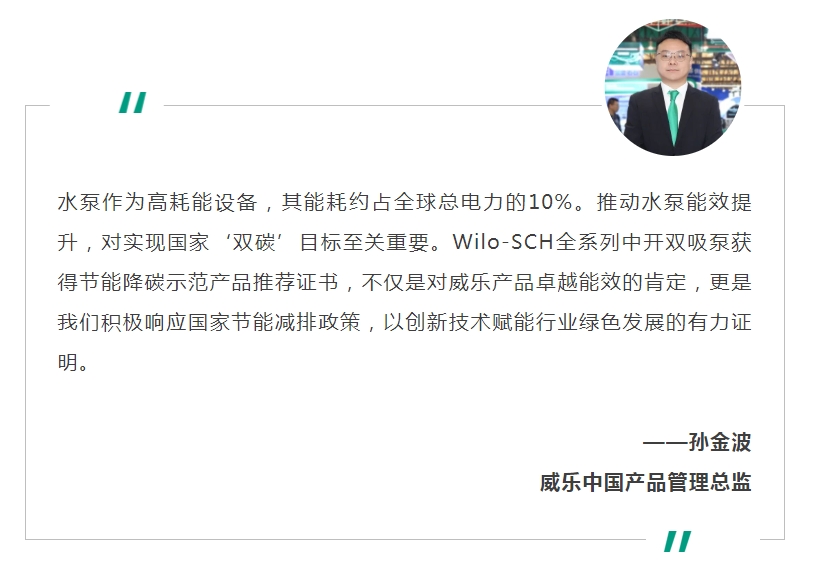 喜报!Wilo-SCH系列中开双吸泵产品获中国电子节能技术协会 “节能降碳示范产品推荐证书”