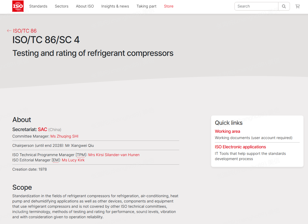 近日,国家标准化管理委员会发布了关于国际标准化组织相关技术机构主席和秘书任命的通知,美芝&威灵总裁邱向伟担任国际标准化组织制冷空调技术委员会制冷压缩机测试与评定分技术委员会(ISO/TC 86/SC 4)主席,任期自2026年至2028年,为期3年。