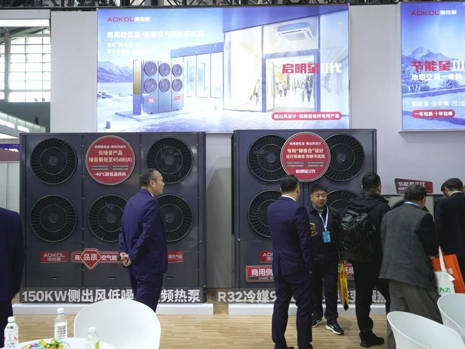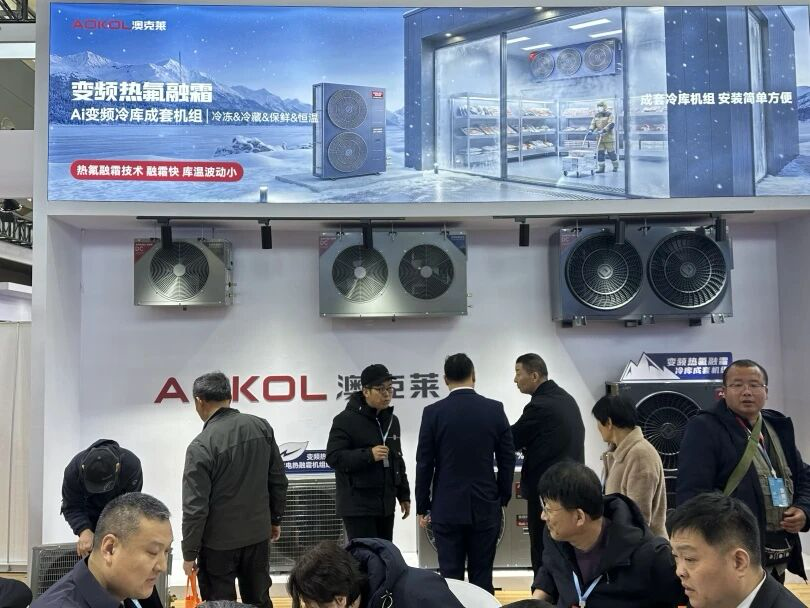 全场景解决方案。澳克莱展台构建多个实景应用:针对“煤改电”后市场的商用变频机组、助力农业现代化的恒温恒湿“智慧方舱”,以及工商业冷库机组,无不彰显澳克莱不仅是热泵制造商,更是环境系统综合服务商的定位。