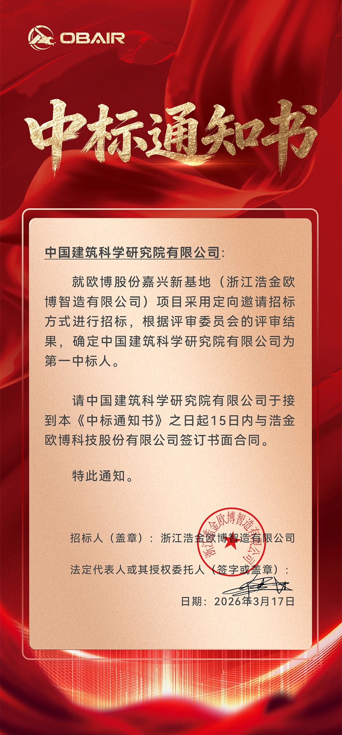 中标结果的揭晓,意味着欧博空调华东总部智能制造基地的建设,即将从宏伟蓝图走向实景画卷!