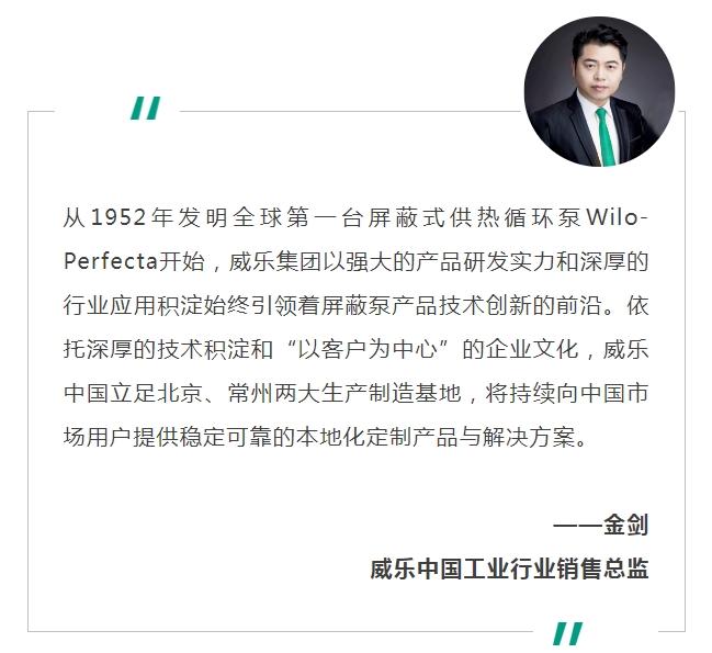 Wilo-BCES系列大流量永磁屏蔽泵产品,是专门面向严苛使用环境、高防护要求、高可靠性要求的储能温控配套定制水泵市场,针对非常有限的安装空间、设备泄漏风险、设备运行噪音高以及设备位置偏远为维修带来极大不便利性等行业痛点,Wilo-BCES系列产品极其紧凑的产品结构、零泄漏的运行保障、水冷电机的有效降低噪音以及IP68的超高防护等级,都将为储能温控行业设备商及终端用户带来更加安心的使用体验、更好的运行保障,以及更多的成本节约和对周边环境及人文安全的维护。