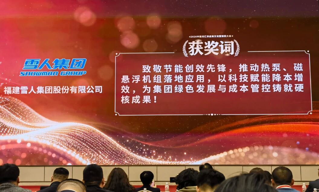 2026双汇供应商交流暨颁奖大会在双汇总部隆重举行。作为双汇集团长期的亲密合作伙伴,雪人集团成为本届大会唯一受邀授奖的制冷行业企业,并凭借热泵与磁悬浮机组两类核心产品,为双汇集团降本增效做出突出贡献,荣膺双汇“年度创新奖”。