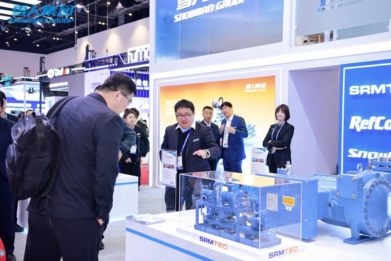 在主展位,雪人设置热泵展区、RefComp展区、食品冷链展区、无油离心压缩机展区、制冰系统解决方案展区五大展区,全面展现在冷暖领域的全链条技术实力与绿色发展理念。