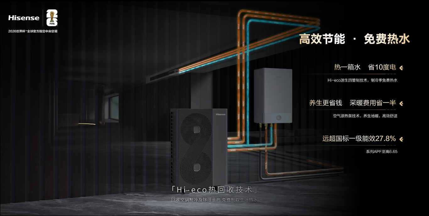 其核心搭载的Hi-eco热回收技术,可实现多模式同步高效运转;制冷时节,它能智能回收系统废热,免费制取生活热水,搭配空气源热泵技术更能让采暖费用减半,能效表现远超国家一级标准。同时产品具备强悍的环境适配性,无惧 -30℃极寒与66℃酷暑,始终保持稳定运行。