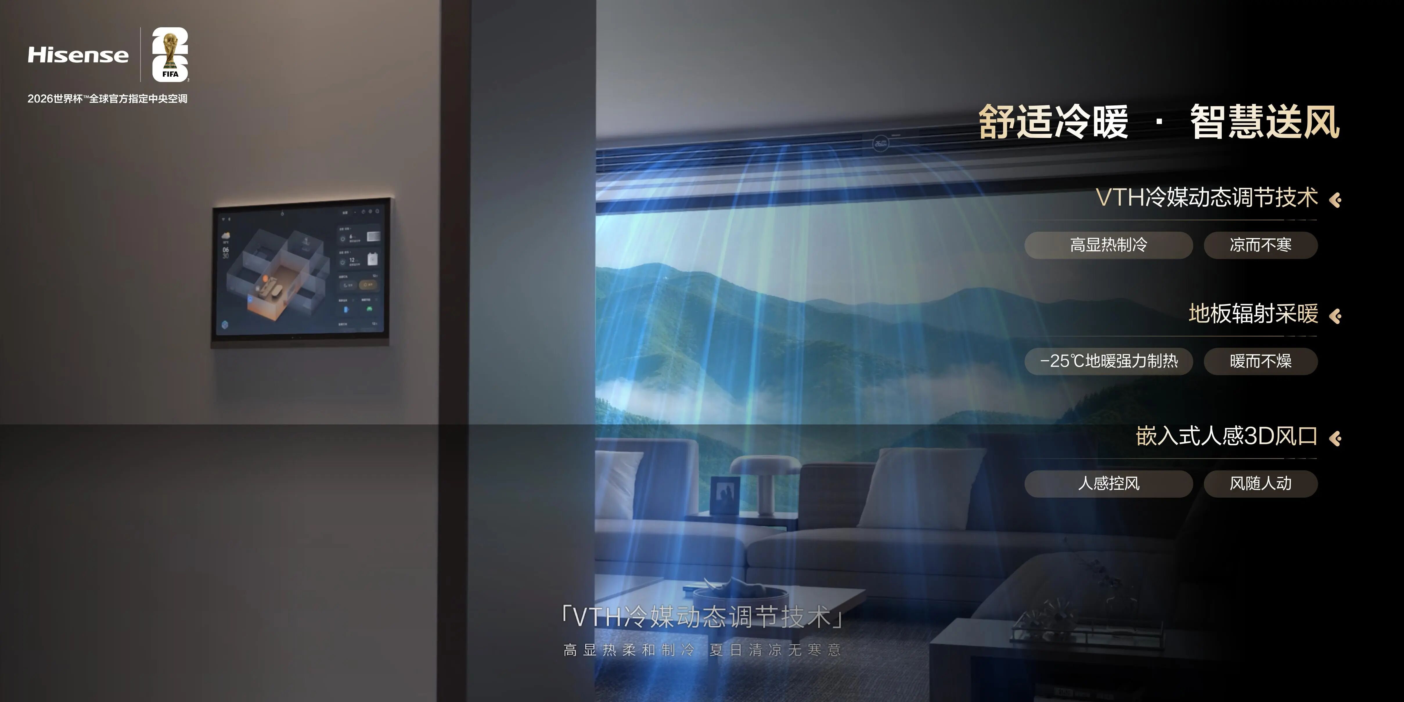 以科技驭空气,以智慧启舒居。4月8日,中国制冷展如期启幕,行业目光齐聚于此。作为2026世界杯全球官方指定中央空调,海信中央空调以“Ai智启未来空气家”为核心主题,重磅发布海信5G中央空调Ai家IIPRO高端全场景新品。