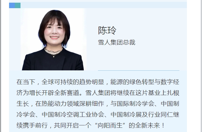 雪人集团总裁陈玲为仪式致欢迎辞,中国制冷学会理事长兼副秘书长李晓虎、中国制冷空调工业协会秘书长白俊文为庆典仪式致辞。