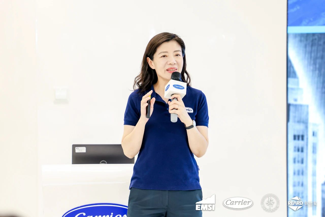 本次沙龙由EMSI 大客户项目经理 汪阳海先生主持。活动伊始,他首先邀请开利中国商用暖通空调业务董事总经理 王晨女士发表致辞。王总回顾了开利空调的在华发展历程,并强调未来将通过集团旗下EMSI的可持续咨询能力与开利技术体系的深度协同,以 “全周期解决方案服务商” 角色兑现客户长期价值承诺,为低碳发展注入确定性力量。