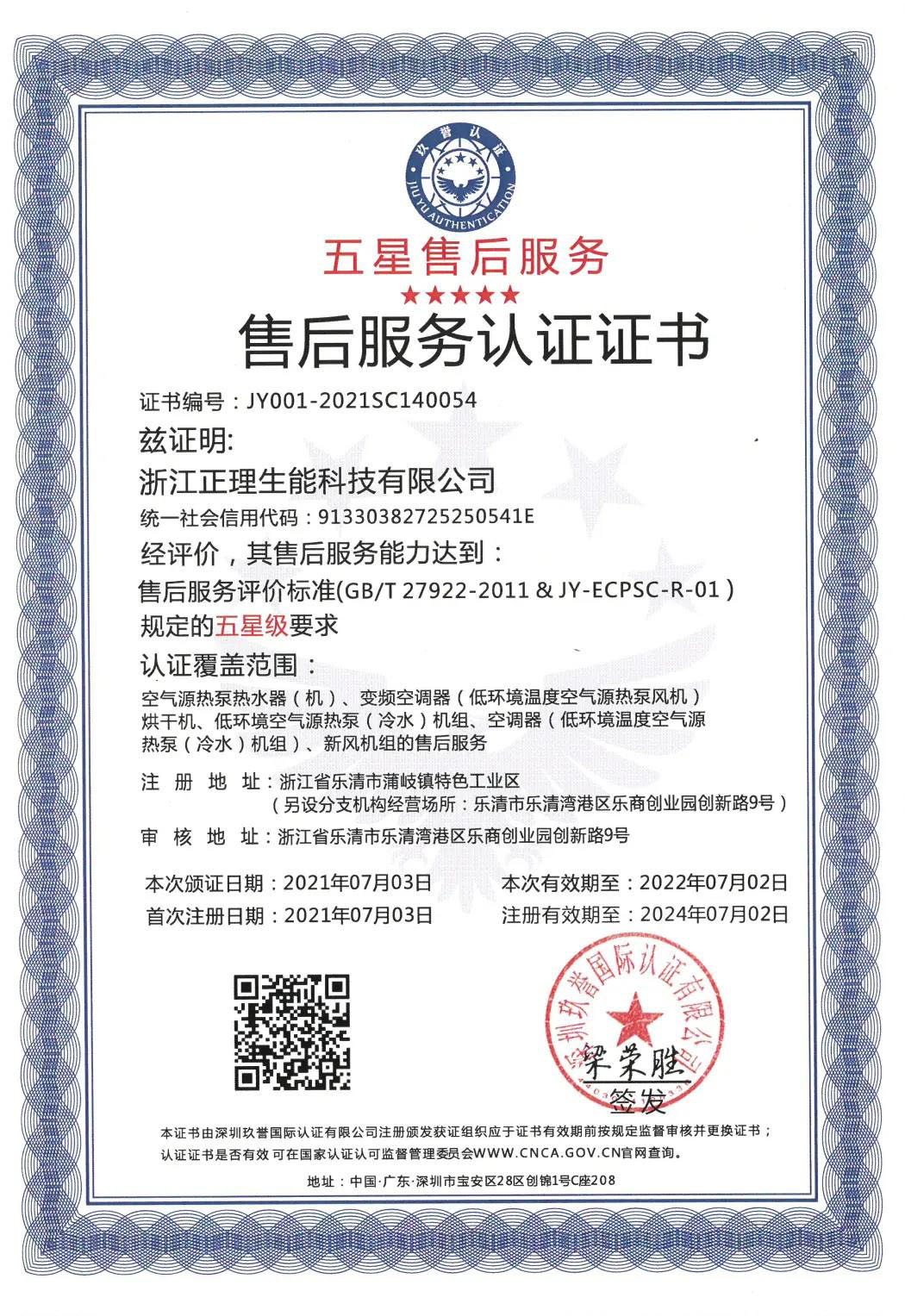 近期,生能又一次凭借自身高品质服务,历经严格审核,通过五星售后服务认证复审,荣获五星售后服务认证。