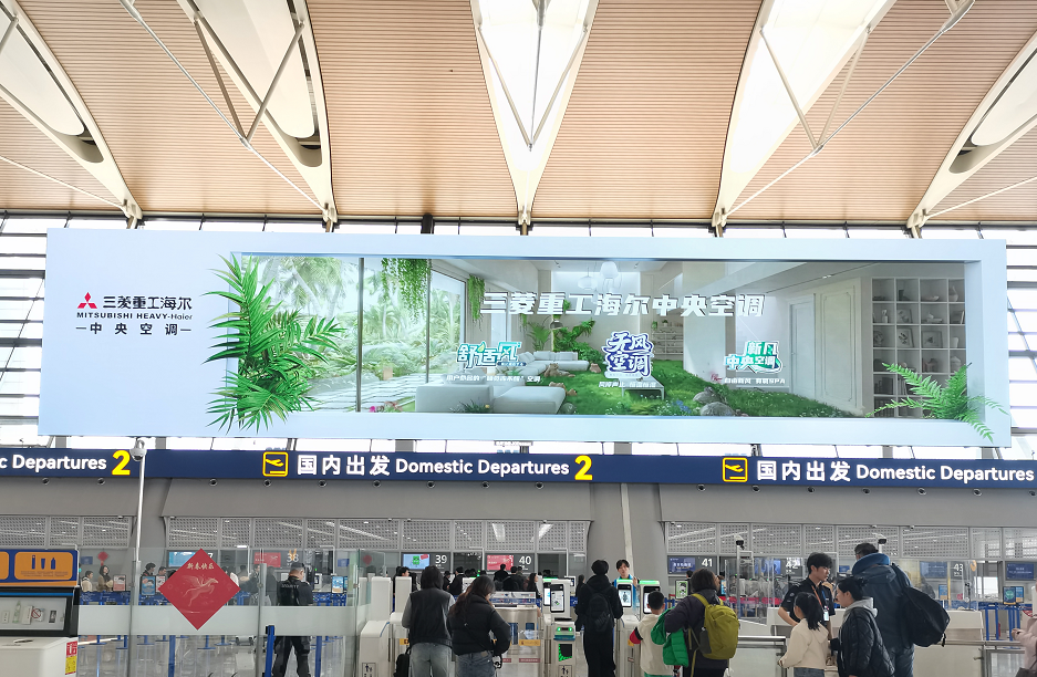 在信息爆炸的时代,将品牌价值精准传递给用户同样至关重要。在营销层面,三菱重工海尔的策略清晰而立体。一方面,通过新媒体等方式放大品牌声量,例如3月12日,三菱重工海尔中央空调重磅亮相上海浦东国际机场、虹桥国际机场,双子机场五块巨屏,此外,三菱重工海尔还积极参与热泵展等行业盛会,将自身的品牌实力与创新方案展示给更多消费者与经销商,极大地提升了品牌势能与加盟吸引力。