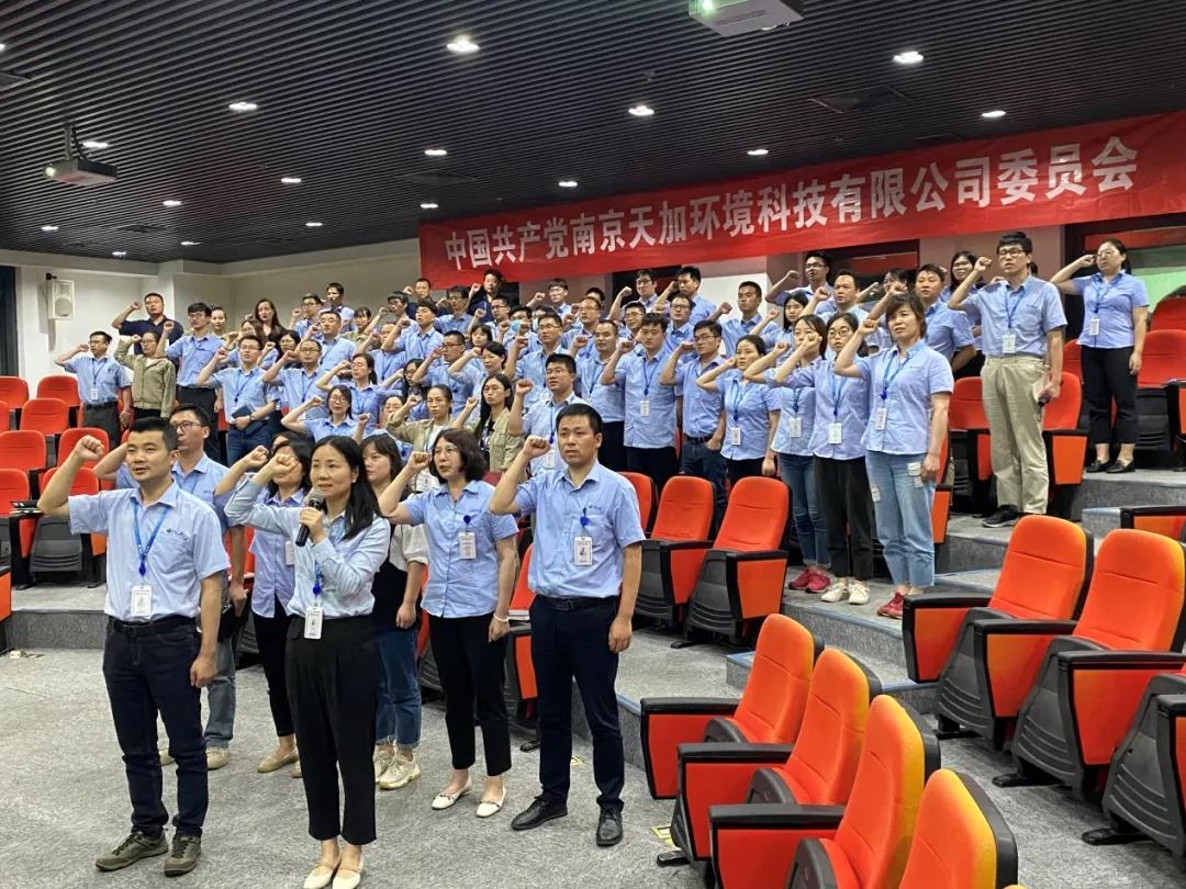 7月14日,天加召开以“中国共产党建党99周年,在疫情中领悟初心使命”为主题的2020年全体党员大会。天加党委书记周智英,副书记朱其娟、以及全体党员、预备党员参加到本次大会之中。