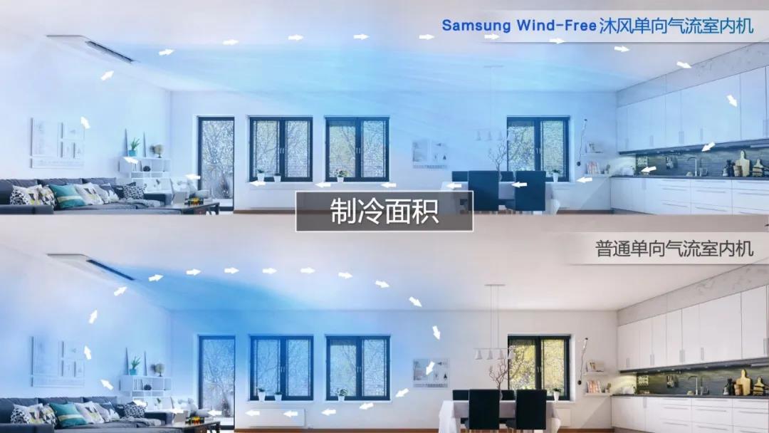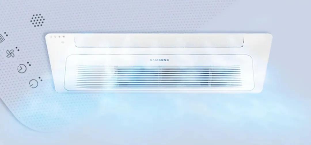 有些用户开空调的同时还要开启空气净化器,为门窗紧闭的空间制造新鲜空气,三星Samsung Wind-Free沐风单向气流嵌入式产品可选配等离子空气净化装置,制冷的同时净化空气,而且设备小巧不占地,达到“一机两用”的效果。