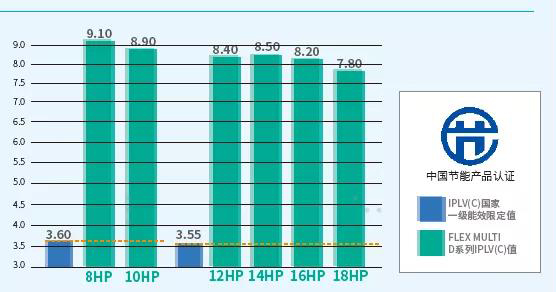 创业谷占面约25亩,总建筑面积约80000㎡,体量大,空调使用率高,如何降低能耗也是项目方重点关注的点之一。日立FLEXMULTI D系列通过核心技术的革新与系统优化,全线产品均通过国家一级能效认证,机组IPLV (C)最高值可达9.10,远超国家一级能效等级,机组运行更节能。