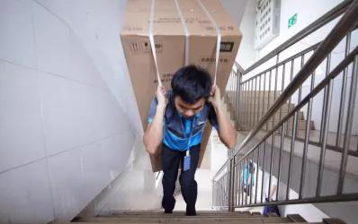 没有电梯,吴桦年只能一层一层把家电扛上去