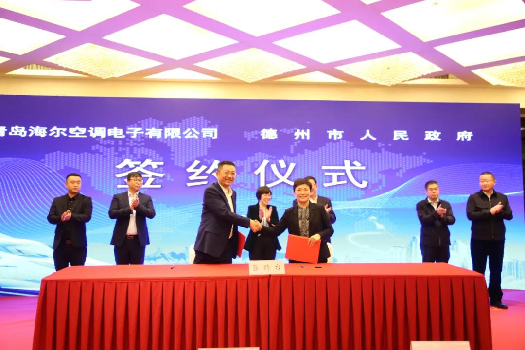 10月16日,山东德州市政府与青岛海尔空调电子有限公司签订工业互联网战略合作协议。会议现场,德州武城县政府与青岛海尔空调电子有限公司签订生态品牌战略合作协议。
