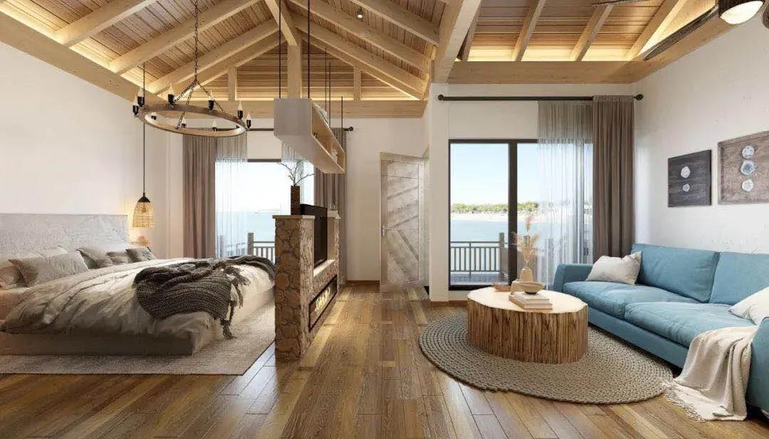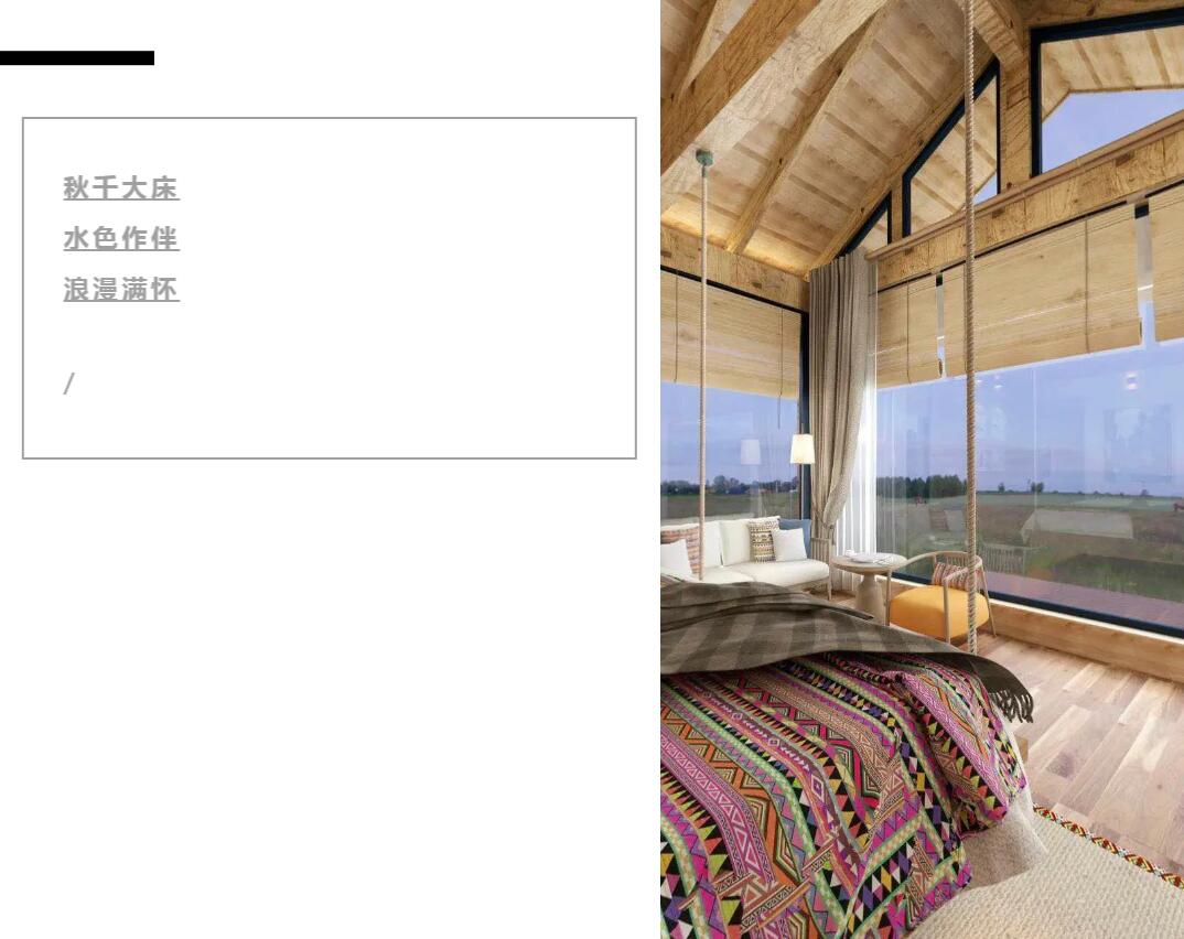 其中跨水而建的度假木屋,面朝湖心,让居于其中的人,一睁眼就是潋滟湖光,阔景阁楼、亲子复式、秋千大床,多种木屋户型带来不同的住宿体验。而在这些设计独特的木屋中,海信中央空调承担着提供舒适环境的重任。