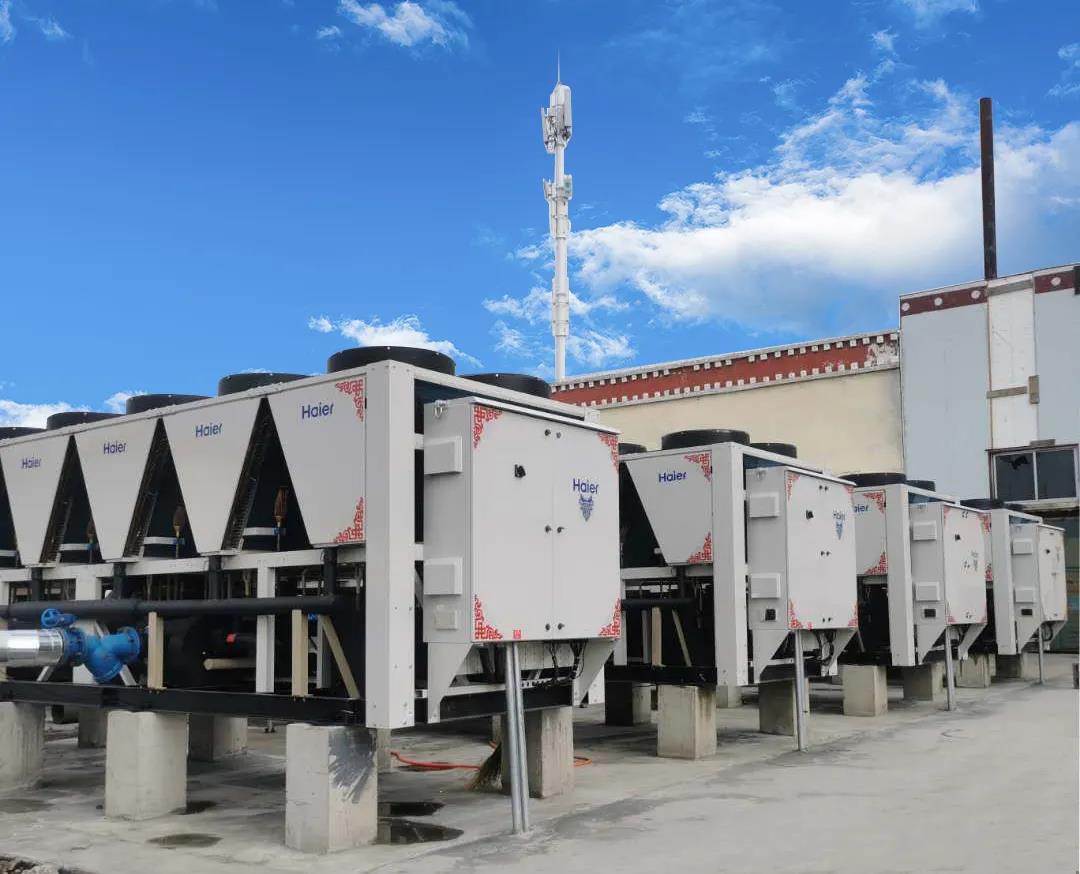 为了响应国务院发布的《打赢蓝天保卫战三年行动计划》,项目方在新建办公楼的供暖设备选择上,除了强劲稳定运行,更要求绿色环保。针对果洛的地理位置、供暖需求以及国家发展绿色能源政策,海尔中央空调提出了以7台超低温双级压缩风冷螺杆空气源热泵机组为主的综合空气解决方案。