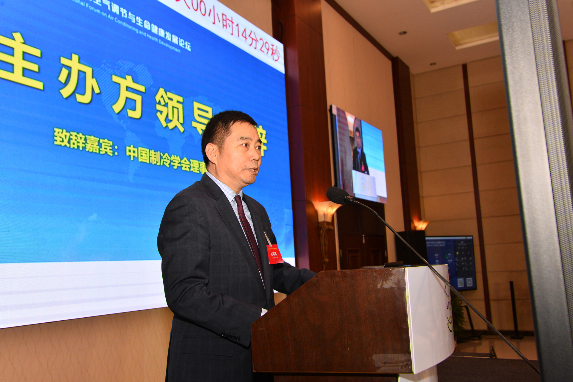 图为:主办方领导中国制冷学会理事长金嘉玮致词