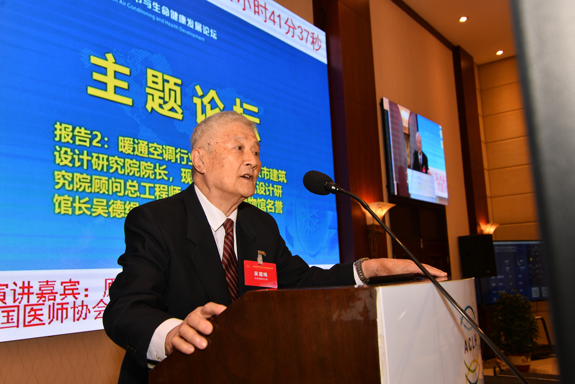 图为:暖通空调行业泰斗、前北京市建筑设计研究院院长,现任北京市建筑设计研究院、 顾问总工程师、中国空调博物馆名誉馆长吴德绳在论坛中发表演讲