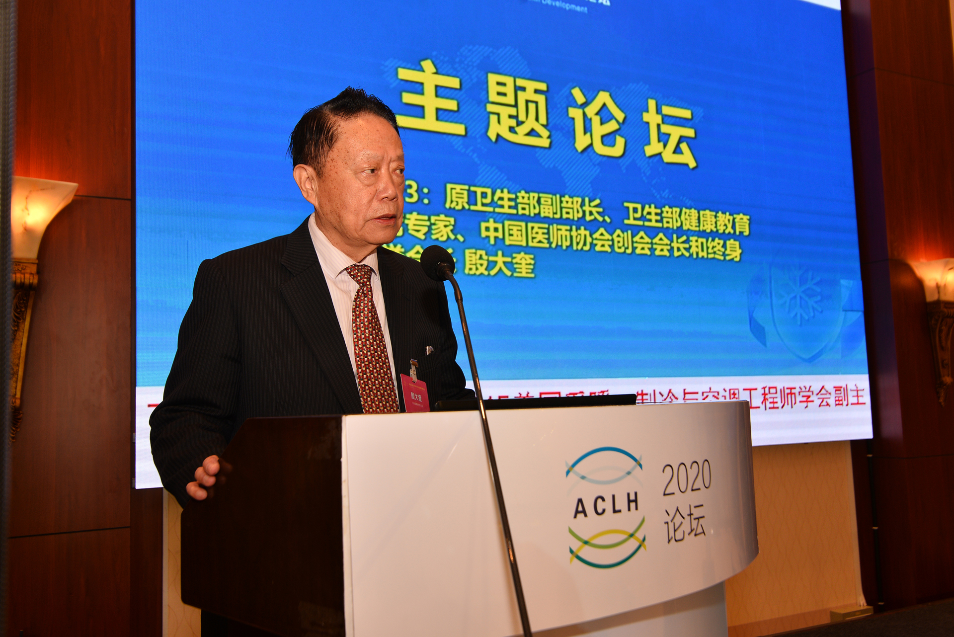 图为:原卫生部副部长、卫生部健康教育首席专家、 中国医师协会创会会长和终身名誉会长 殷大奎在论坛会上发表演讲