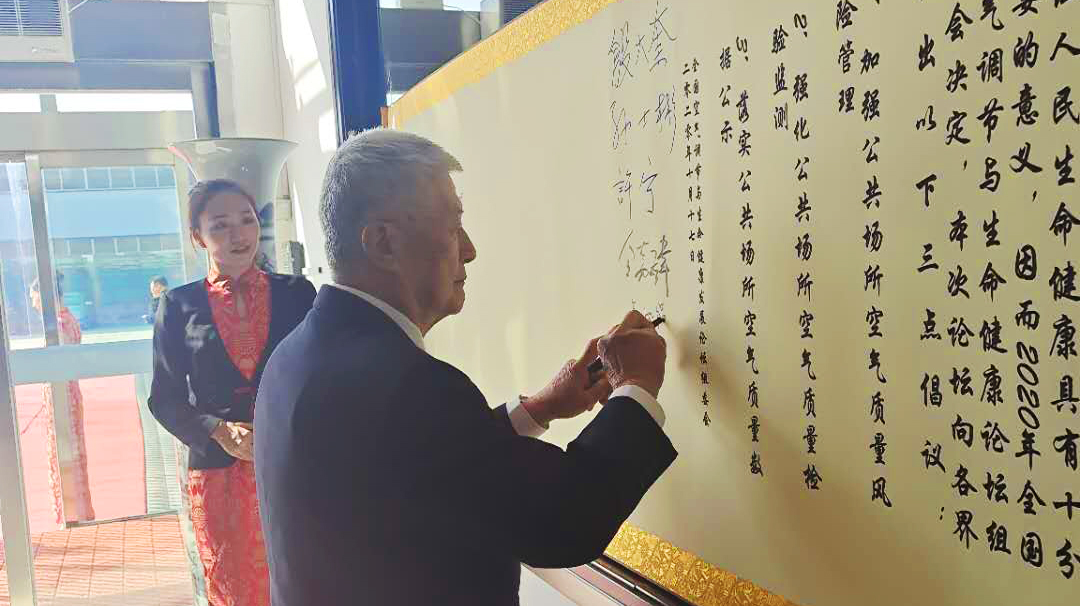 图为:暖通空调行业泰斗、前北京市建筑设计研究院院长,现任北京市建筑设计研究院、 顾问总工程师、中国空调博物馆名誉馆长吴德绳等领导嘉宾在倡议书上签字