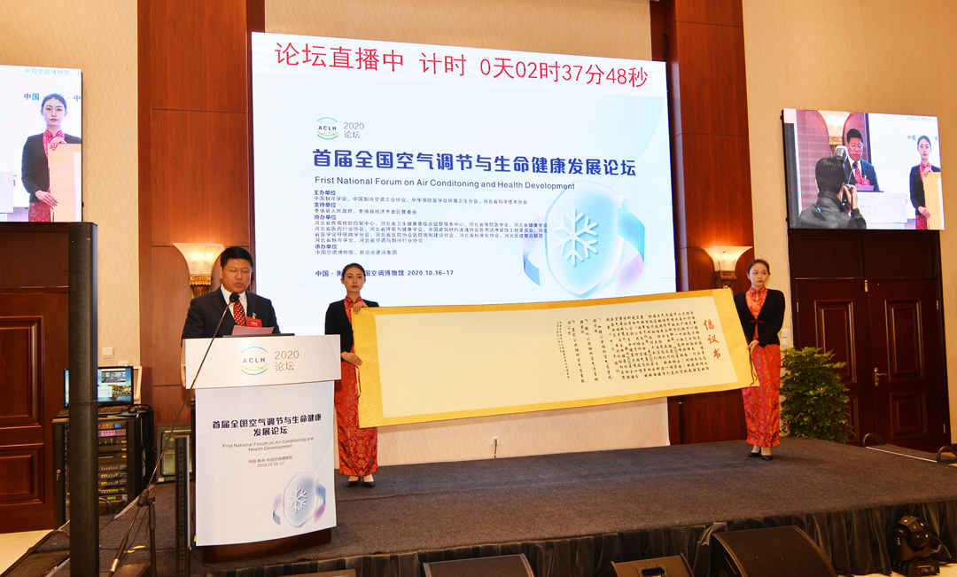 图为:首届全国空气调节与生命健康发展论坛《倡议书》发布仪式现场