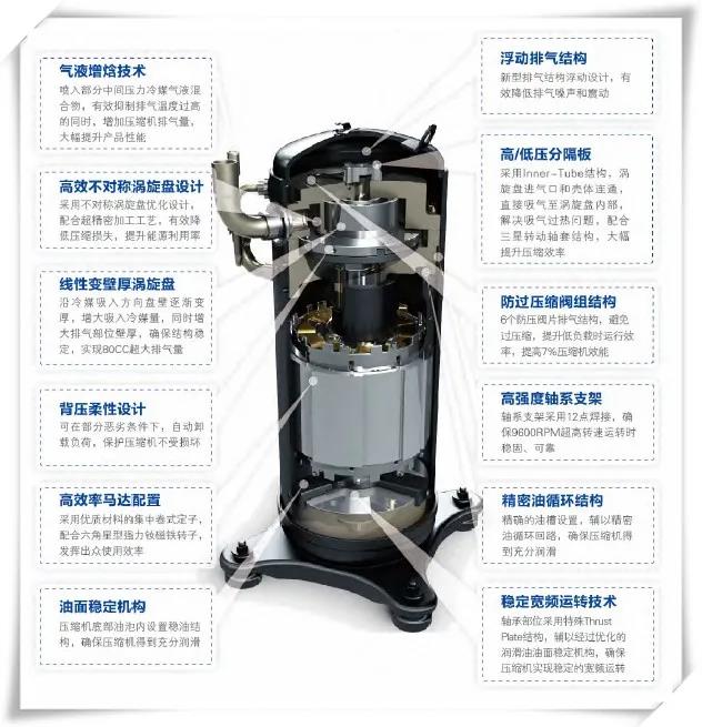 制冷是本分,制热是本事。单从空调性能来说,制热性能远远不及制冷性能那般实用,不少消费者反映,很多时候制热功能的设置完全形同虚设,气温过低的情况下室外机便不能很好的工作运行,导致室内温度一直得不到提升,所以说制热效能才是考验空调实力的有力标准。为解决这一问题,三星中央空调为压缩机倾注气液增焓技术提供强劲热力。