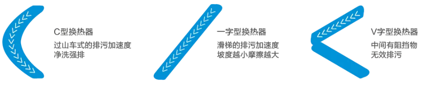 美的TR+ mini Pro系列家用中央空调搭载了行业首创的整体式C型换热器,轮廓光滑过度,相对于传统的一字和V型设计,坡度大、摩擦力小,换热面积同比V型换热器平均提升8.15%。利用最速曲线原理,实现无死角快速强力排污。换热器同时采用不对称设计,加快冷凝水排出,提升有效换热时间,极速高效换热,洁净效果有目共睹。
