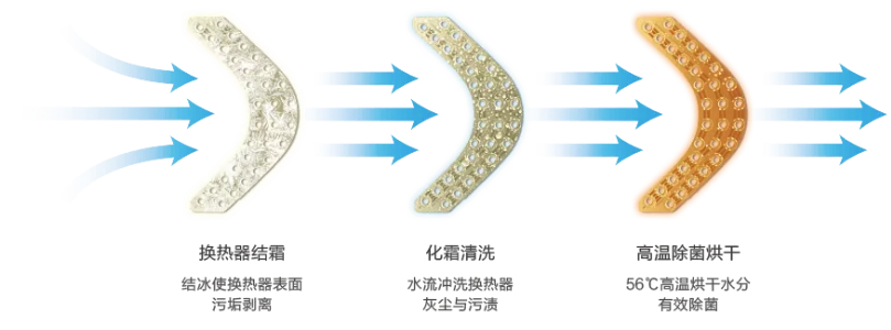 美的TR+ mini Pro系列家用中央空调采用空调自身结冰化霜的原理,将换热器上的污垢剥离并冲刷干净,起到换热器自身自动清洁的效果,同时烘干温度高达56 ℃。不仅烘干水分,还形成良好的杀菌效果。